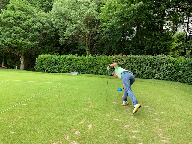 18番448yミドルは、ドライバーはナイス。3wで打つも残り38y上りへ。ここからなんとか奥3mの3オン。なんとか入れてパー。