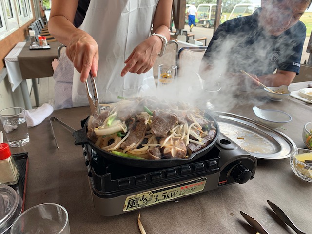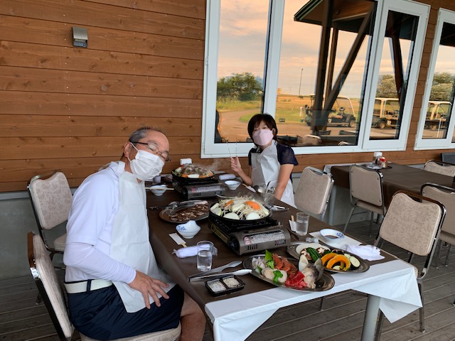 朝、9時に縁の北海道のH.Kさんがホテルに迎えに来てくださり、4名でまずは新コースへ。で、うわおー、H.Kさんからチャンピオンの記念にとポロシャツをいただきました。ありがとうございます。着替えをした後、、旧コースへ。で、ジンギスカンを食す。いやー、今回はかねひろのジンギスカンと特別バージョンの海鮮焼きとタラの新漬けを腹一杯に堪能する。約90分間堪能に堪能。