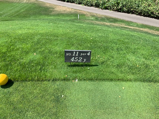 11番452yミドルは、ドライバーは左ラフへ。H.Kさんがラフの球を探してくれました。ありがとうございます。3u、52度で3オン。ボギー。