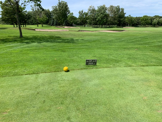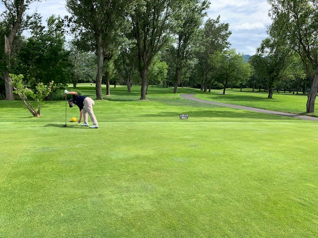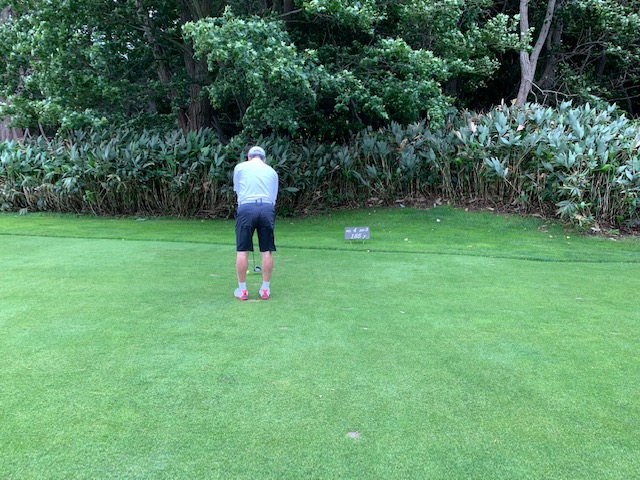 12番222yショートは、ドライバーで打つも左のカラーへ。パターで打つも2.4mに。入らずボギー。