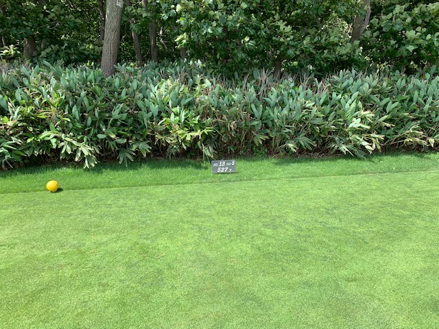 13番527yロングは、ドライバーはまずまず。3uでナイスな位置へ。8アイアンでピン手前15mに。ここからまたまた3パンチ。あちゃー。