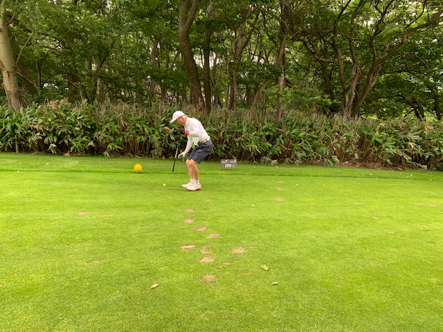 10番583yロングは、アゲンストの中、ドライバーは飛ばず。3w、3uでバンカーイン。ホームラン。奥のカラーから3パンチでダボ。素晴らしい4,5打目でH.Kさんがパー発進。