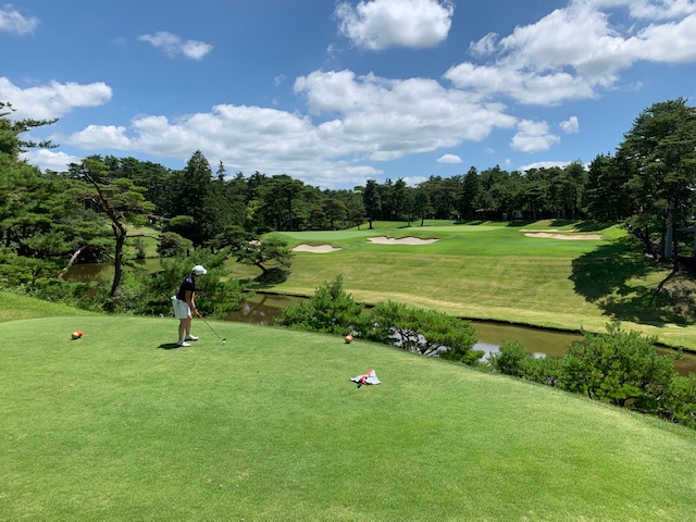10番389yミドルは、ドライバーは右ラフへ。25度のuでカラーへ。3パンチボギー。素晴らしいセカンドで2オンさせたJ.Nさんが無難にパー。圧巻は3mに2オンさせたM.Yさんのナイスバーディだった。女性ながら2個のバーディを10ホールで奪取。凄すぎます。