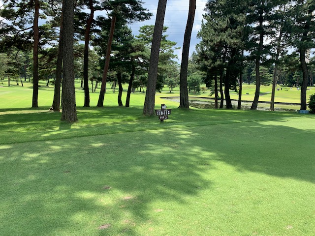 2番170yショートは、6アイアンで打つもちょいと足りず。52度での転がしがナイスでパー。見事な1オンからH.Tさんが無難にパー。