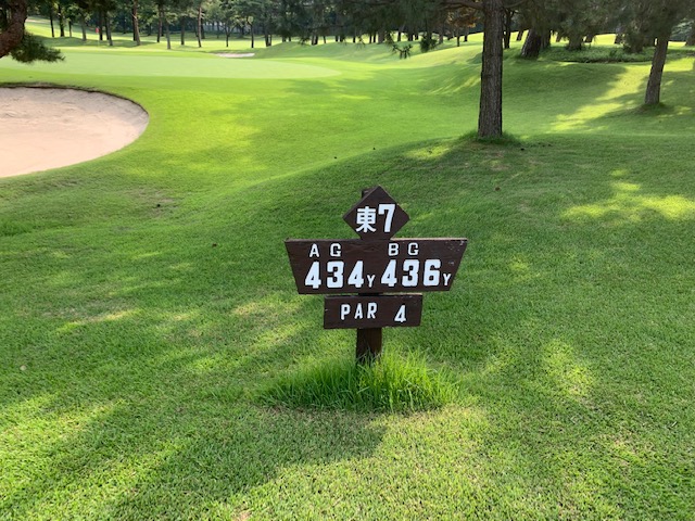 7番297yミドルは、ドライバーでバンカーを越えたが、林越えとなります。56度でカチ上げるも左へ。ショボアプでボギー。ここもしっかり2オンからH.Tさんが無難にパー。また、素晴らしいバンカーショットからK.Sさんもパー。・