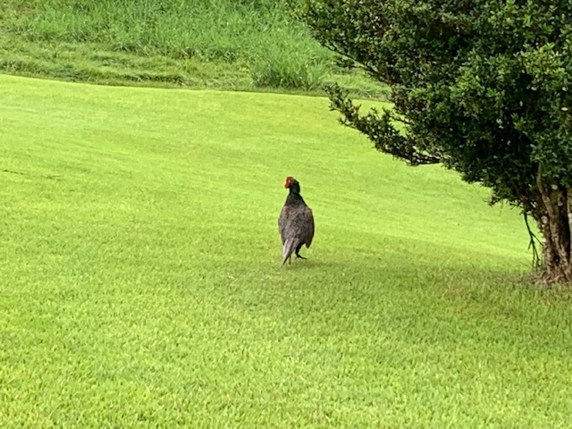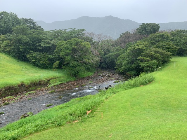 16番370yミドルは、ドライバーは竜巻球。ブッシュへ。レッドペナゾーンに入り、ドロップ。9アイアンで3オン。ボギー。見事な2オンからS.Kさんがパー。