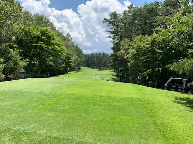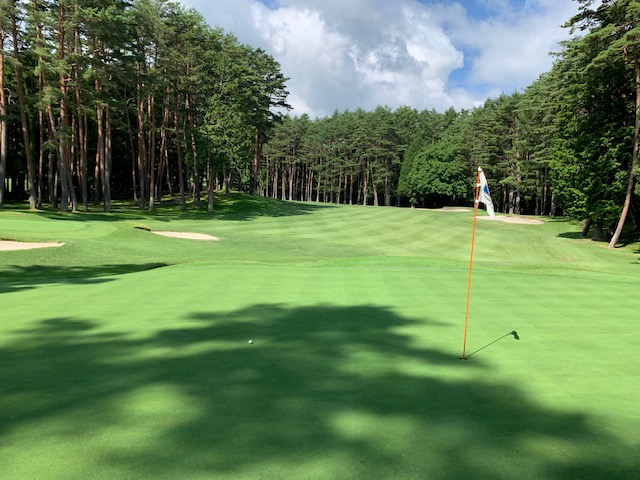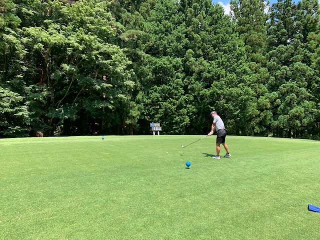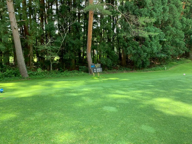 1番536yロングは、ドライバーはナイス。3w、56度で8mに3オン。無難にパー。ビッグドライブからほぼ2オンで花道まで運んだオッチャンが楽々バーディ。また、3打目を2mにオンさせたS.Mさんも放り込んでバーディ発進。同じく楽々3オンからA.Fさんも無難にパー。