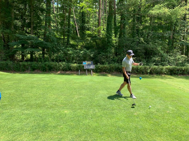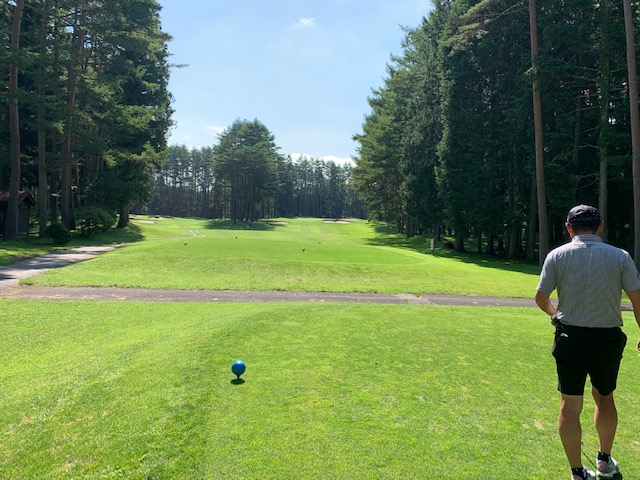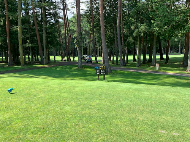 時間になり、西スタートへ。今日はお誘いいただいた東京都のA.Fさんと4人でゴルフです。青ティで進行します。グリーンはBグリーンです。