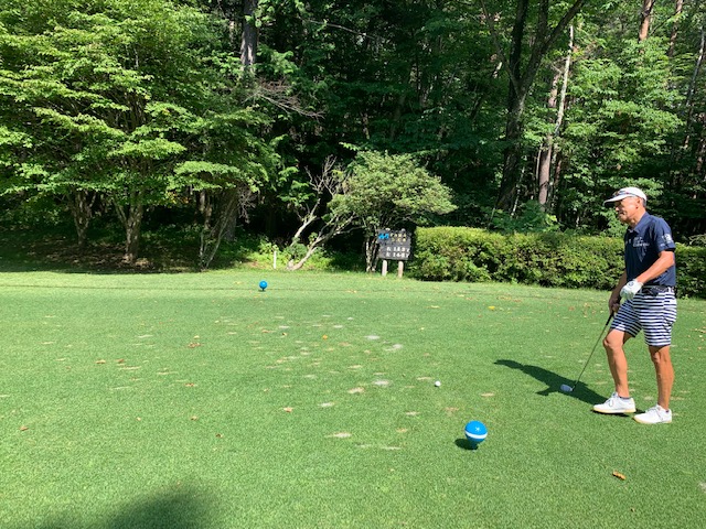 5番549yロングは、ドライバーはナイス。3wもまずまず。3打目を8アイアンで3mに3オン。惜しくも決められず。見事なパター力でオッチャンもパー。