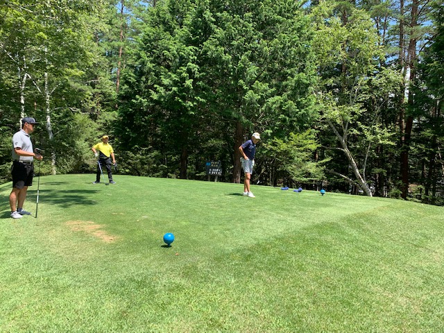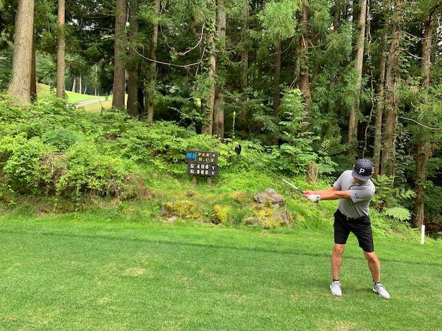 1番558yロングは、ドライバーは左ラフへ。セカンドを25度のuで打つもチョロ。3打目を3wでスライスで狙うも、全然掛からず。打てない位置へ。アンプレ宣言。5打目をPWで打つもショート。なんとか寄せてダボ。またまたナイスパター力でオッチャンがパー。同じくナイスアプでA.Fさんもパー。