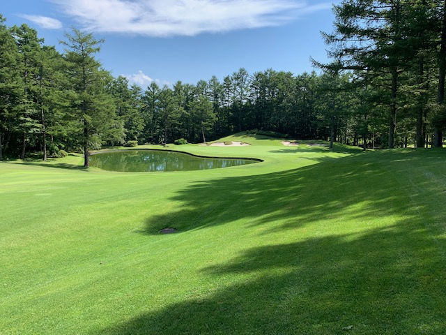 2番371y左ドッグのミドルは、ドライバーはバンカーの浮島へ。ここからPWでナイス2オン。無難にパー。ナイスアプからS.Mさんが鉄パー。
