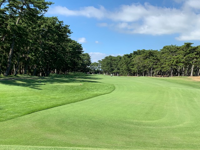 大洗の感想・・・・素晴らしいフェアウェイ。超綺麗でした。また、この癖になるレイアウトの妙は流石です。が、やはり、ここの良さはバックから廻る方がより一層スペシャルを感じます。難を言うとすれば、林帯が綺麗でない。フェアウェイと林帯のギャップが激し過ぎる。林に入ったらペナルティだ、嫌ならフェアウェイへ打て!は分かりますが、私にはただ手入れがイマイチに感じた次第。しかし、ここの17番のザザーンの音と、黒松の配置、挑戦意欲を掻き立てるレイアウトには感動します!