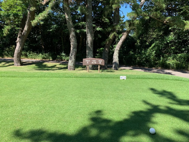 2番476yロングは、ドライバーは左の林入口へ。6アイアン、8アイアンでグリーン左へ。56度で打つも寄らず入らず。しっかり3オンのN.Kさんが無難にパー。