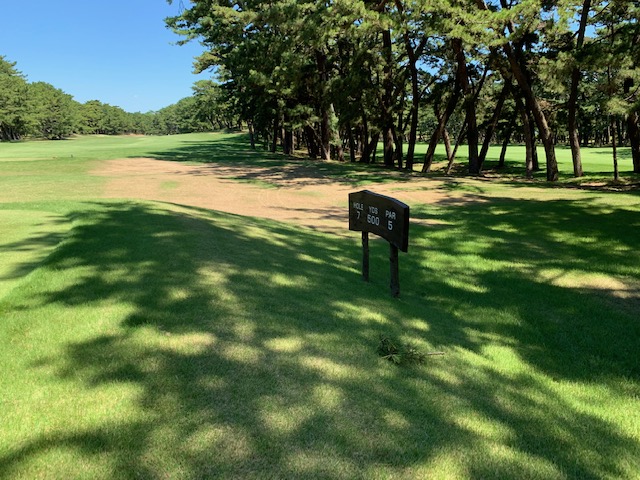 6番308yミドルは、右へ。PWで狙うも木に当たる。寄らず入らず。ここもナイスアプからM.Nさんがパー。3連続。素晴らしい。