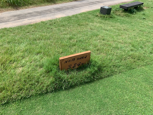 12番190yショートは、5アイアンで打つも左へ。なんとか寄せてパー。見事なショットで1.4mに1オンのK.Kさんが残念パー。