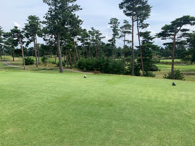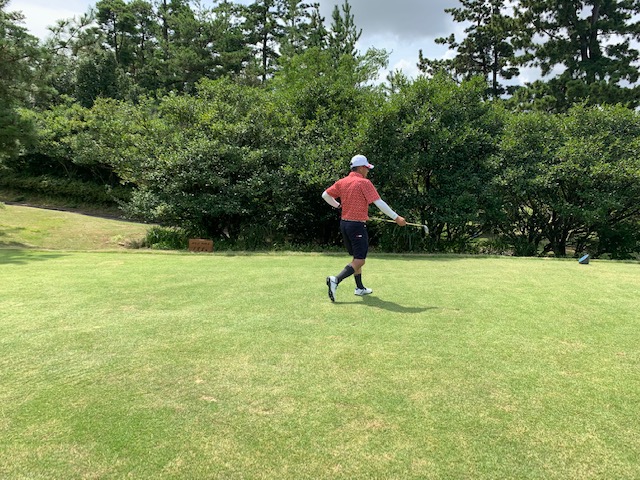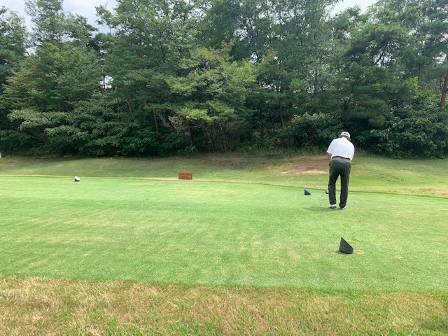 4番170yショートは、5アイアンで打つも右へ。なんとか寄せてパー。6アイアンで6mに1オンのK専務が残念パー。