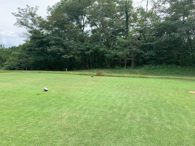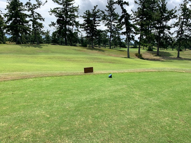 17番190yショートは、3uで打つも右へ。寄せたがパターが決まらず。残念ボギー。
