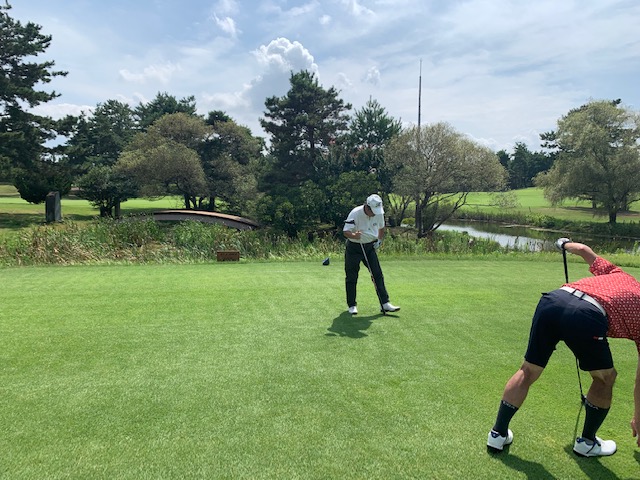 今日は片山津遠征の幹事長の埼玉県のT.Tさんと片山津のK専務とのラウンドです。今日は黒をやめて青で進行します。