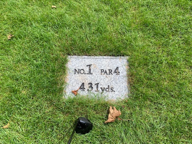 時間になり、パターを少々転がして、スタート。アウトから。今回は黒ティ進行です。今日は、前記のS.Sさん、昨日のN.Tさん、そして縁のN.Yさんとのペアリングです。皆でマッチをして楽しみます。