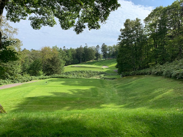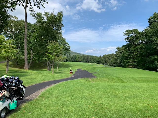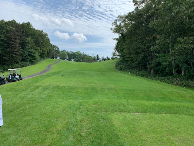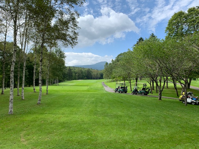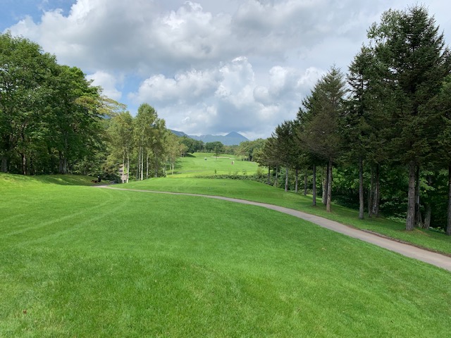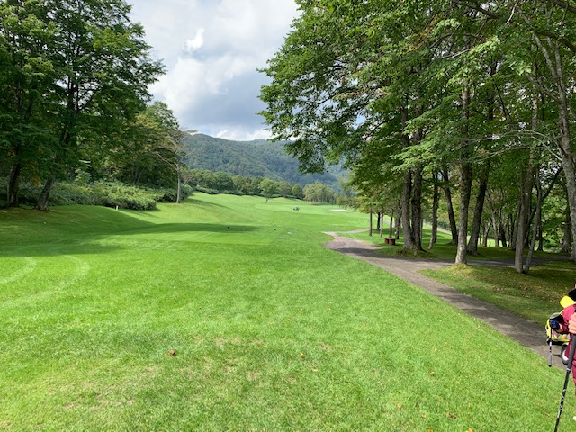 9番496y右ドッグのロングは、ドライバーはナイス。が、セカンドの3wが狙いより左で崖下へ。PWで打つも木に当たる。寄らず入らずボギー。お二人には辛勝。