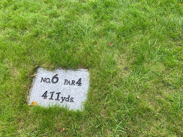 6番411yミドルは、ドライバーは竜巻球。暫定球を打つもまた竜巻球。球が無くなり、N.Yさんから黄色のボールを借りる。幸い初球があった。9アイアンでグリーン近くへ。アプは全然寄らず。が、7mを放り込んでナイスパー。ナイスアプからN.Tさんもパー。