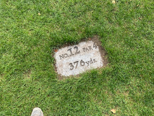 12番376yミドルは、ドライバーは竜巻球。なんとかセーフ。9アイアンでグリーン左へ。寄らず入らず。