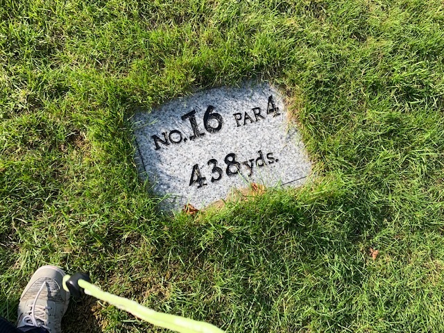 16番428yミドルは、ドライバーは右の池を避けて左ラフへ。3uで右ラフへ。寄らず入らず。ここでお三方にインでの勝利が確定。
