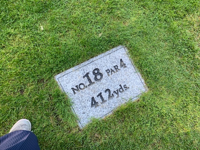17番546yロングは、ドライバーは左ラフへ。3wで残り145yへ。アゲンスト強く7アイアンで奥のカラーへ。無難にパー。