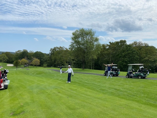 5番605yロングは、ドライバーはナイス。3wで95yへ。56度で左9mに3オン。無難にパー。同じく3オンからT.Kさんも無難にパー。