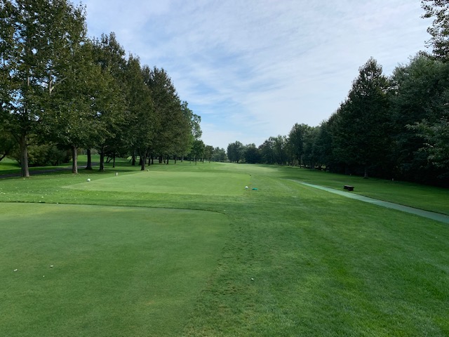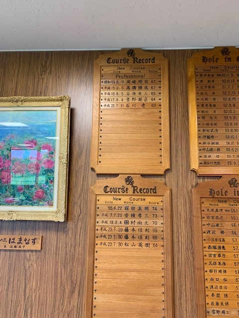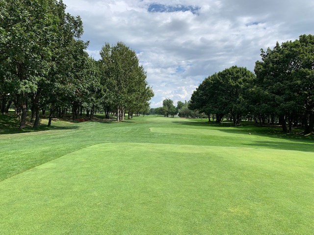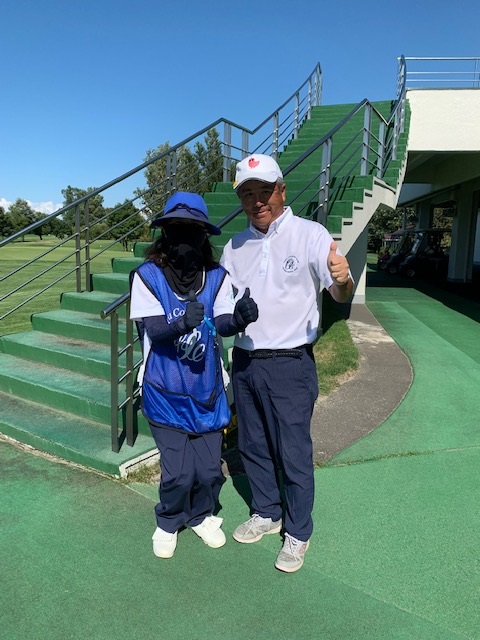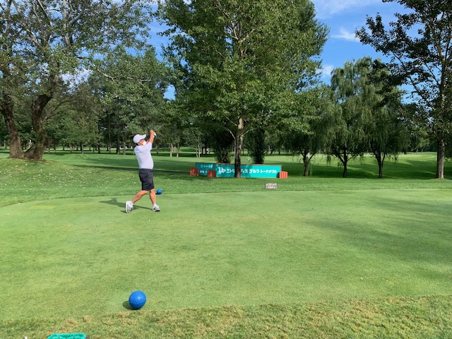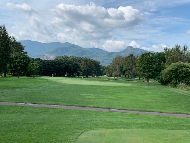 9番534yロングは、ドライバーはまずまず。が、3wが左へ。林から狙えず。8アイアンでチョン出し。残り120yからの4打目をPWで打つもとんでもない左へ。身体が言うことを聞かない。なんとか2mに5オン。3打目を奥に外していたY.Uさんだったが、驚異的なアプでナイスパー。私はナイスボギーとしたがアウトはドローとなった。