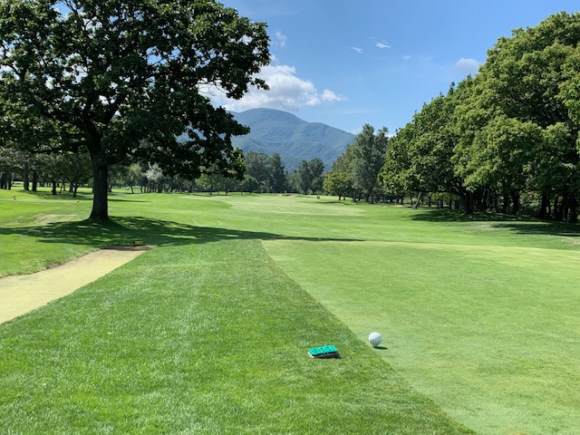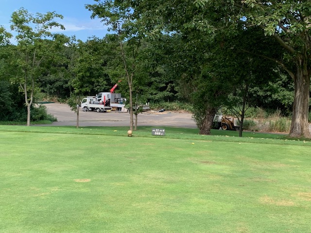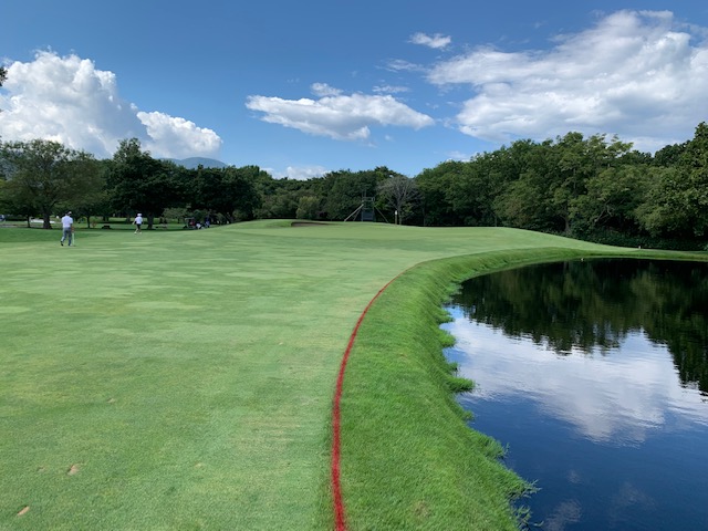 13番527yロングは、ドライバーはまずまず。3wでのセカンドが右へピュー。なんかおかしい。疲労かもしれません。幸い、狙えそうでPWで3オン。無難にパー。同じく3オンからY.Uさんもパー。