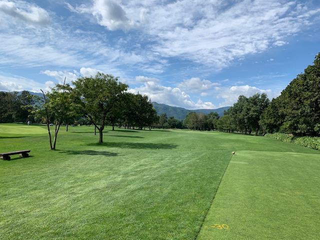 1番406yミドルは、ドライバーは右へ。チョン出し。残り180yから4アイアンでナイス3オン。入らずボギー。見事なアプからH.Kさんがパー奪取。ラッキーながら1アップ。