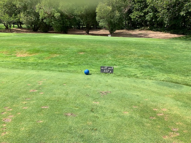 16番422yミドルは、ドライバーは右へ。PWで打つもどダフリ。残り120yからのPWが乗っただけ。やっとのボギー。