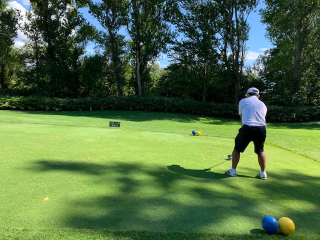 18番407yミドルは、ドライバーは完璧。が、残り165yからの25度のuが竜巻球。ここからの寄せが15mにまで転がる。3パンチダボ。インは2ダウンで敗戦確定。