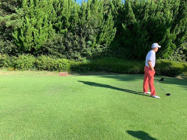 1番561yロングは、ドライバーはナイス。傾斜地からの3uがなんとチョロ。残り202yから3uでナイス3オン。無難にパー。見事なアプから会員のS.Mさんと昨日も廻ったM.Mさんがパー。