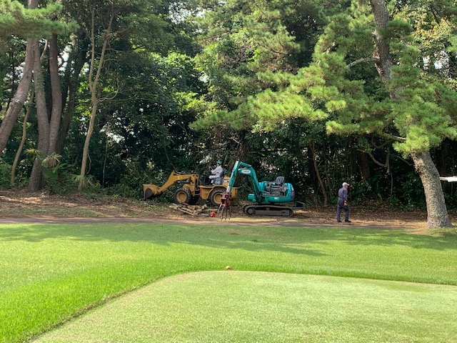1番419yミドルは、ドライバーは右ラフへ。3uで打つも左の入れてはいけないバンカーイン。52度でホームラン。ダボ。