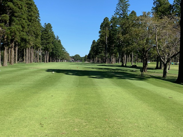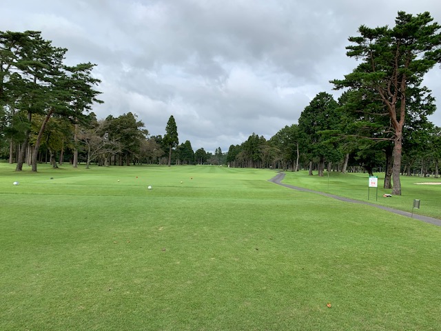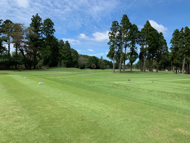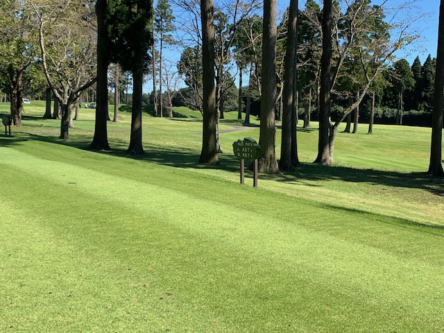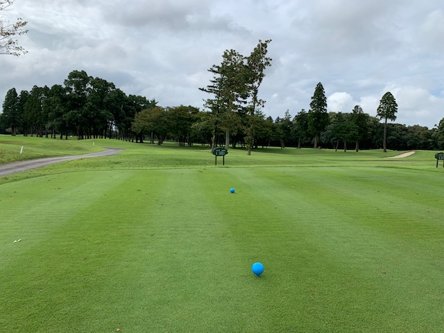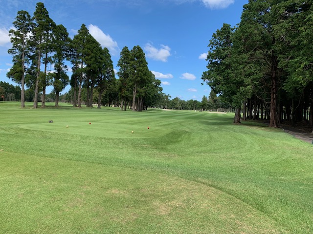 パターを転がします。結構芝が伸びてて遅いなーと思っていたら、「そこでパター練習してはだめですよ!」と周りの方に。お休みグリーンで転がしていた。アチャー。マエシンさん、毎日ゴルフしていてわかんないかなー!超恥ずかしい!