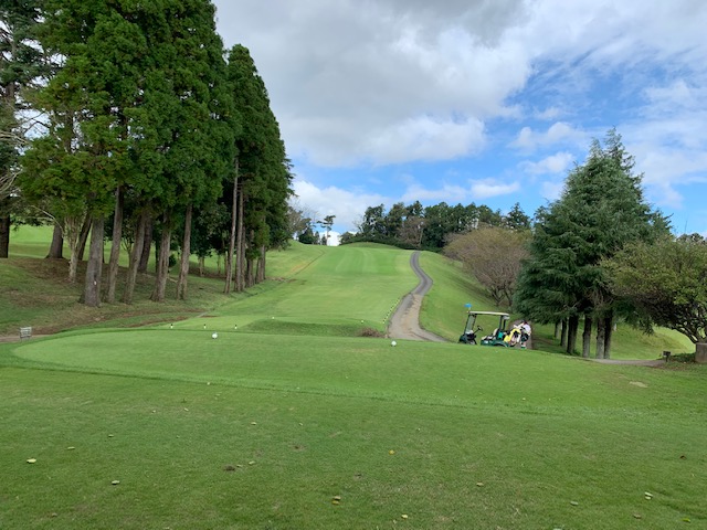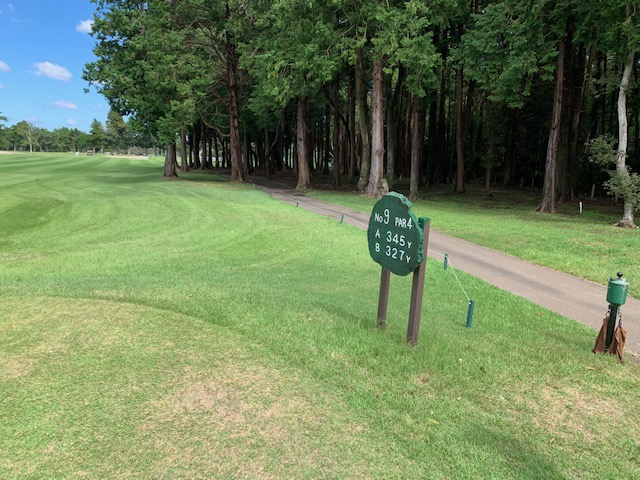 9番林間調の左ドッグの356yミドルは、ドライバーは完璧と思って行ってみたら、木に当たっていた。ややこしい位置からの100yを52度で打つもショート。も、ナイスアプでパー。
