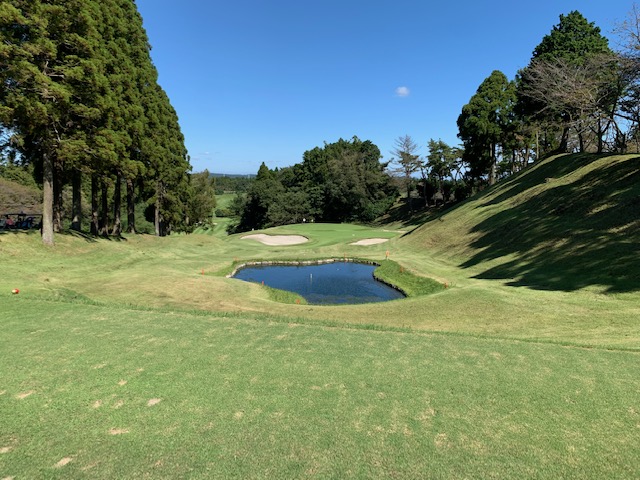 1番林間調の405yミドルは、ドライバーはナイス。8アイアンで打つもちょいとショート。2mに3オン。で、ここから3パンチダボ。へなへなへな。