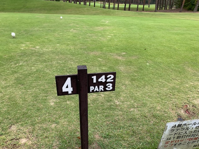 4番142yショートは、9アイアンで打つも右手前のカラーへ。パターで打つもデカい。入らずボギー。しっかり1オンさせた縁の東京都のM.Tさんと埼玉県のN.Yさんが無難にパー。