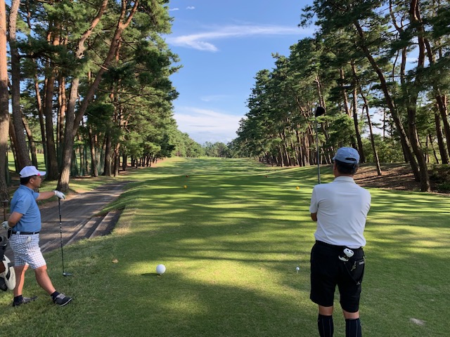 11番367y右ドッグのミドルは、ドライバーは右へ。チョン出し。3打目が引っ掛かる。寄らず入らずダボ。見事な2オンからT.KさんとN.Yさんが無難にパー。