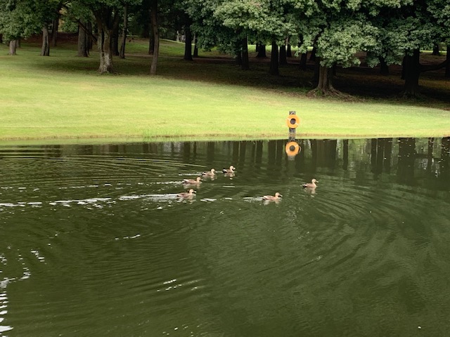 18番393yミドルは、ドライバーはやっとフェアウェイへ。8アイアンで左へ。なんとか寄せてパー。