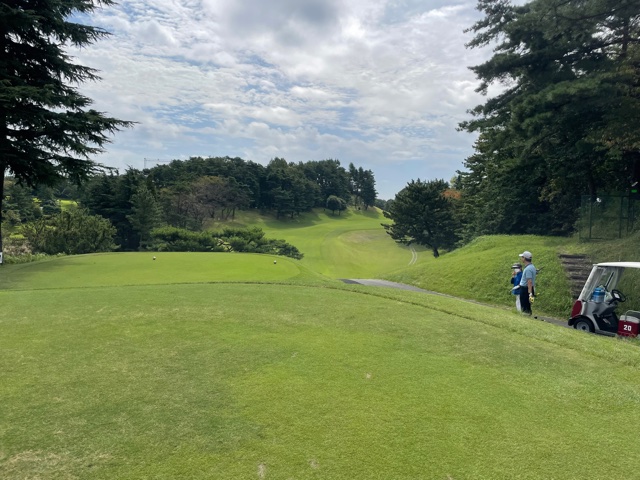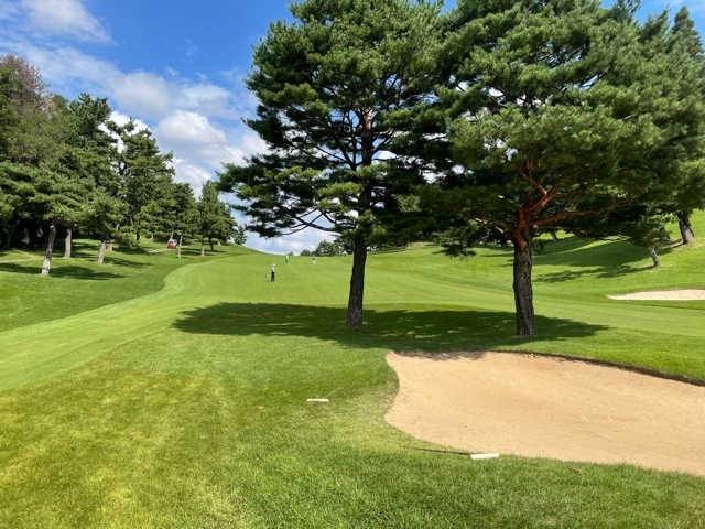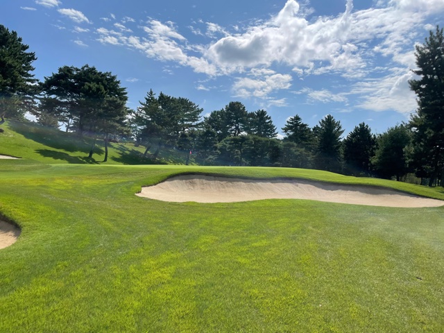 アウトへ。アウトは6番のパー5が4になりましたのでパー35となりました。