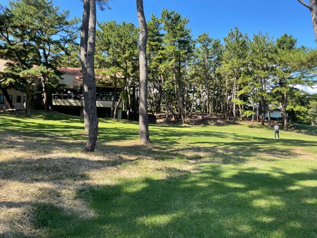5番450yミドルは、ドライバーは右へ。どうでもいいと思って25度で打つも木を越えず。8アイアンでチョン出し。4打目をPWで打つも右へ。やっとのダボ。今日も厳しい展開。