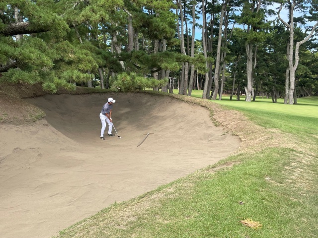 8番214yショートは、3uで打つも竜巻球でバンカーイン。ややこしい位置からナイスで4mに。ボギー。ここも素晴らしいアプ&パターでT.Sさんがパー。