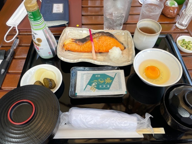 到着後、着替えて、レストランへ。縁の会員さんである茨城県のK.Tさんと神奈川県のR.Sさんがテラスで談笑中でした。私はご一緒させていただき、焼き鮭定食770円を食す。大振りで焼き立てで最高!その後、練習を終えられた神奈川県のT.Kさんもお越しに。