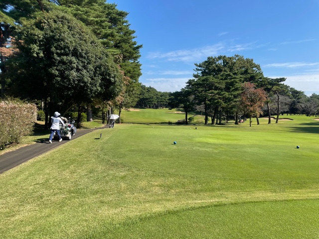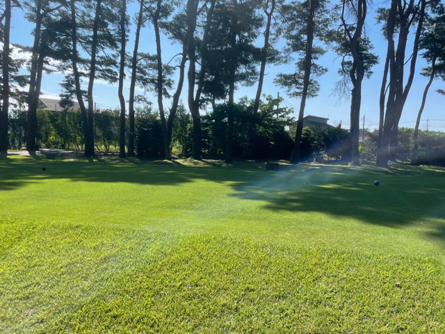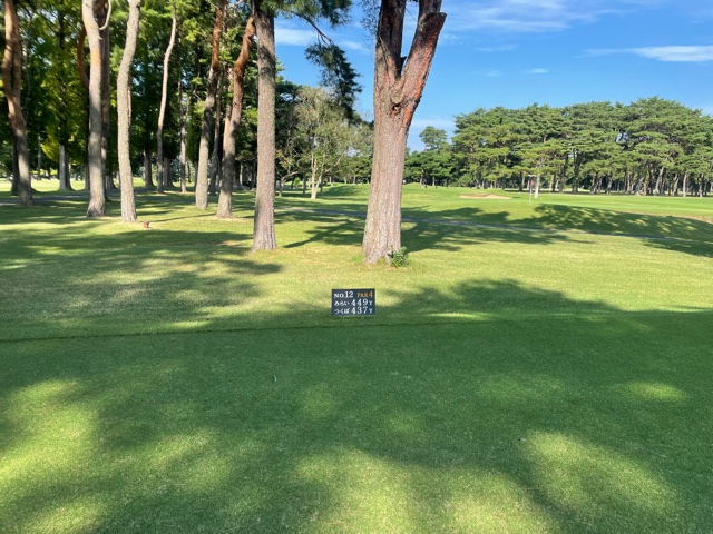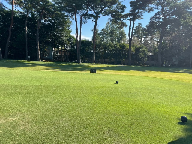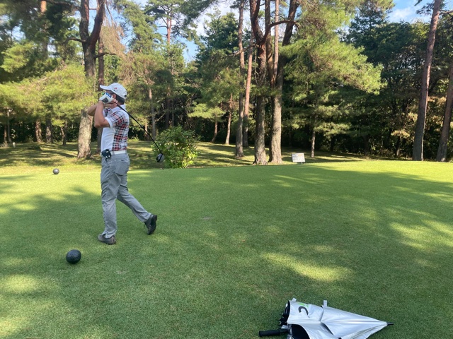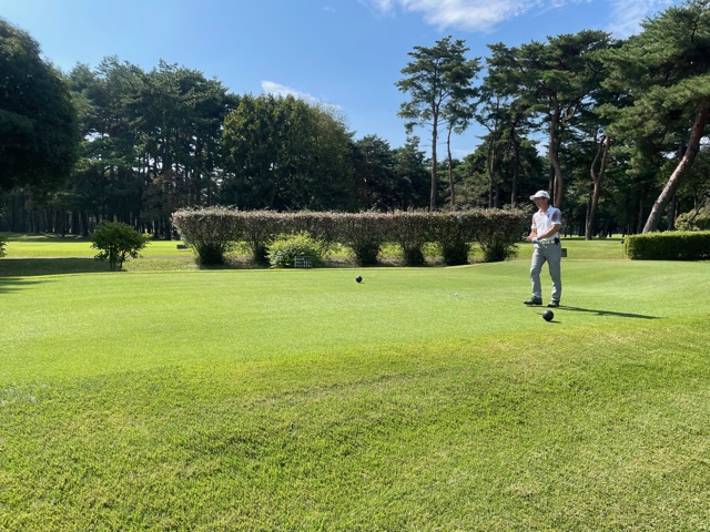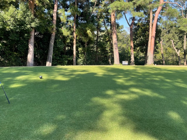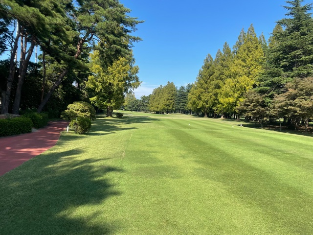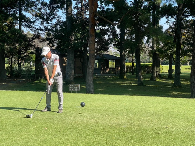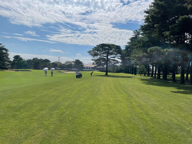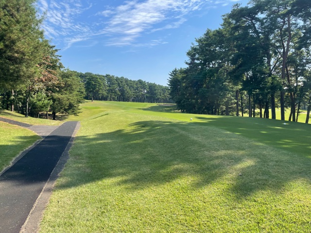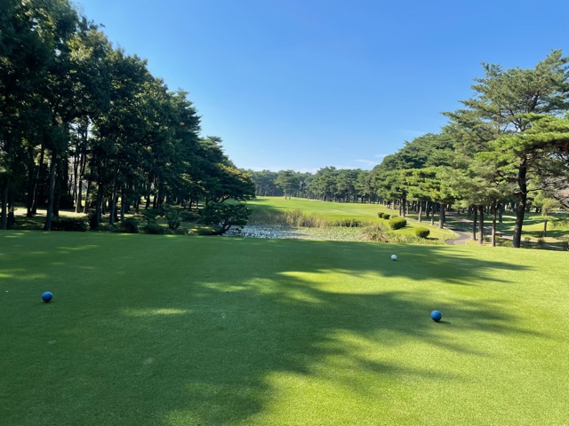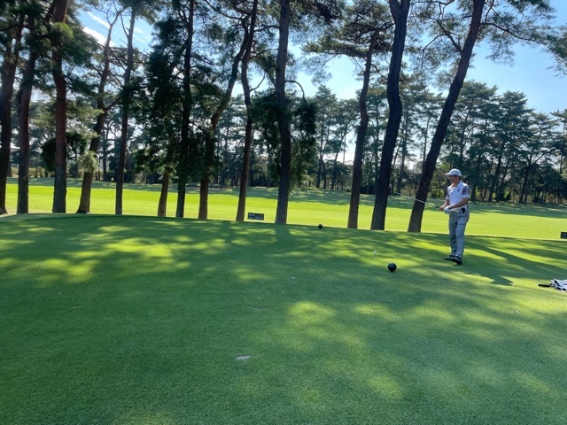 時間になり、慌ててインコースへ。今日はみらいグリーンの黒ティで進行します。黒ティは8年前の倶楽部対抗の練習ラウンド以来かな。