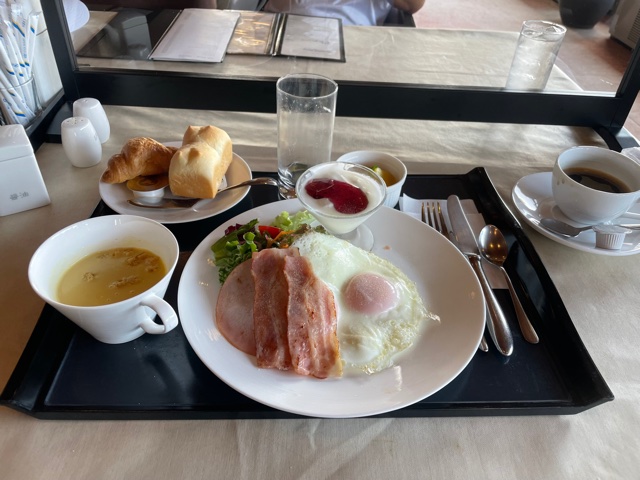 まずは着替えて、レストランへ。主役の東京都のM.Oさんもお越しに。洋朝食をいただきながら、一緒に歓談。その後、縁の会員さんA.Fさんも加わられ3者談義。で、下へ。
