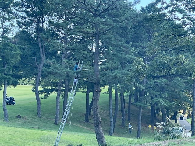 10番478yミドルは、ドライバーは大きく右へ。隣の11番から25度のuで打つも木に当たり、またまた下へ。PWで上へ上げる。4打目を8アイアンで打つもショート。なんとかダボ。