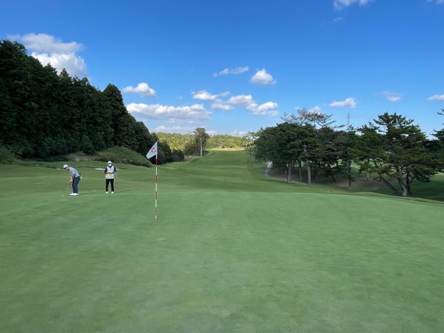 3番294yミドルは、ドライバーは右へピュー。が、良い位置に。52度で打つもショート。寄らず入らず。素晴らしいセカンドで2mに2オンのA.Fさんがきっちり沈めてナイスバーディ。3mに2オンのM.Oさんも無難にパー。
